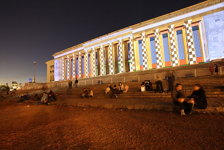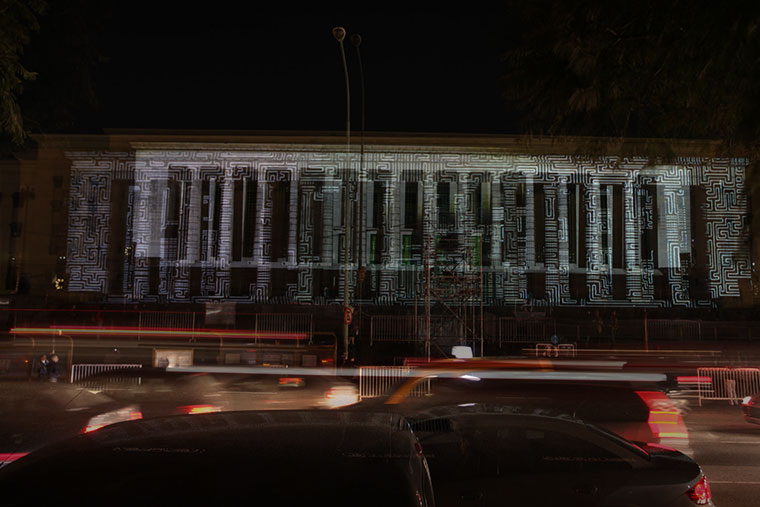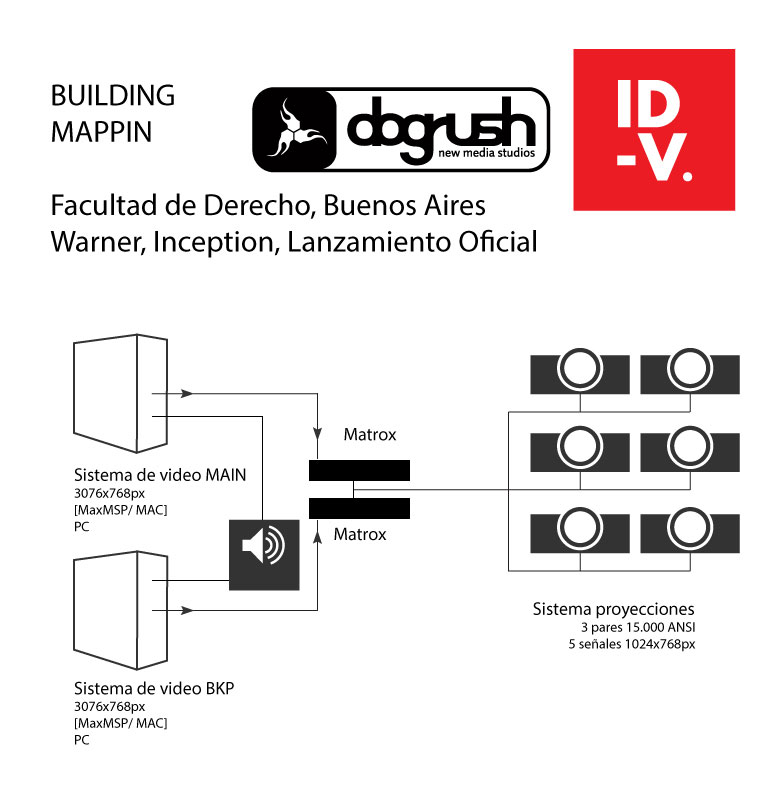 Espectáculo audiovisual creado para el lanzamiento de la película de Warner Brothers, Inception (El Origen en español). Se relevo y reconstruyó el edificio para generar una máscara de ajuste 3d. Luego se realizo el contenido y se generaron los ajustes ópticos necesarios, produciéndose una animación y sonorización para el evento. El equipo de producción pudo cubrir una buena porción de las ventanas del edificio para agregar superficie proyectable.